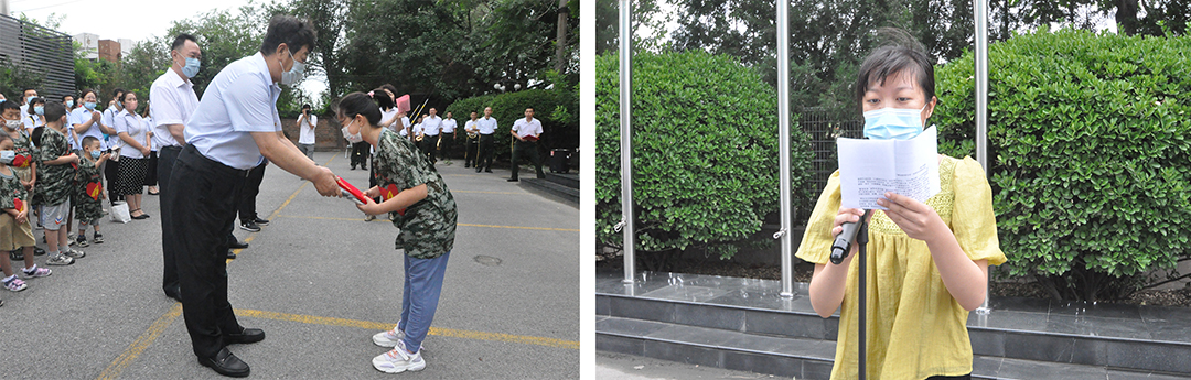 8点整,全体职工和广发官方网站-子女整齐列队参加庄严的升旗仪式并唱国歌。随后崔洪金董事长发表讲话:一是要真正理解“孝”的内涵。古语说百善孝为先,孝心并非是长大后才有的责任,也不是物质与财富所能替代。通过这次活动,孩子们要多理解父母的辛苦,感恩父母给予的幸福生活;二是要真正树立“忠”的志向。孩子是国家的希望,从小要树立忠于祖国、忠于人民,报效国家的远大目标。只要心怀梦想,并努力学习为之奋斗,你们才能在不久的将来成为国家的栋梁,成为民族的脊梁,才能够献身国家建设,才能够做社会主义合格的接班人。三是要继承发扬广发官方网站-人的优良传统。社会就是一本书,部队就是个大熔炉,同样咱们广发官方网站-集团也是锻炼人塑造人成就人的大学校,在这里可以学到你想学的,得到你想要的,是实现人生梦想的好地方。我希望孩子们作为广发官方网站-子女能够记住广发官方网站-人“员工富、广发官方网站-强、国家兴”的企业发展理念,在今后的学习道路上奋勇向前勇攀高峰。最后,借此机会我代表杨兆兰慈善基金会做如下决定,为今年考取国外名校研究生,985、211重点高校和考入市五所重点高中的孩子们给予每人1000元的助学金。