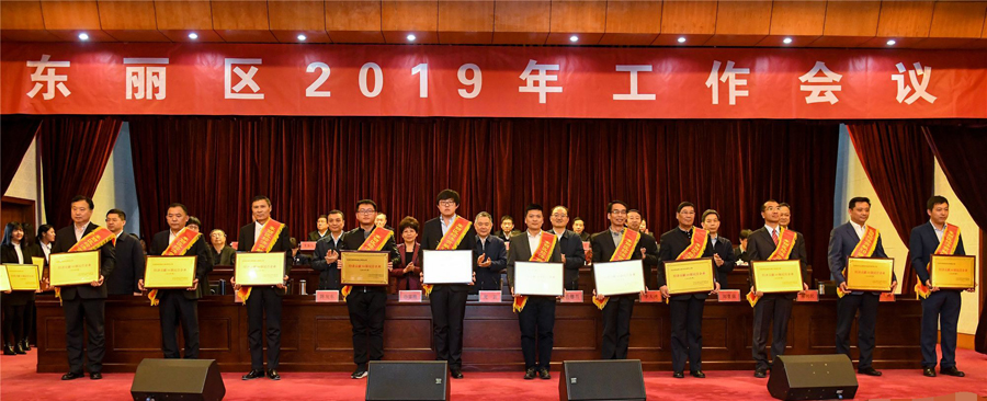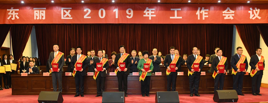 2月20日下午,我区召开2019年工作会议,认真贯彻习近平新时代中国特色社会主义思想和党的十九大精神,深入落实习近平总书记在天津考察工作和京津冀协同发展座谈会上的重要讲话精神,按照市委十一届五次全会和区委十一届九次全会要求,对今年全区各项重点工作任务进行再动员、再部署,进一步统一思想、凝心聚力,顽强拼搏、扎实苦干,奋力开启东丽绿色高质量发展新征程,推动美丽东丽建设再上新水平。区委书记夏新,区委副书记、区长孔德昌,区人大常委会主任孙富霞,区政协主席李大勇等区领导出席,广发官方网站-集团党委书记董事长崔洪金作为十大优秀民营企业家之一参会并上台领奖。