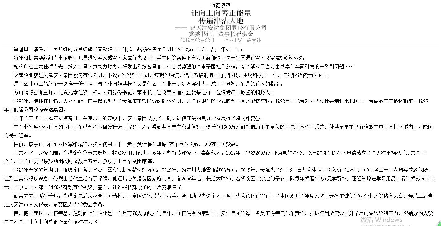 《天津日报》刊发 让向上向善正能量传遍津沽大地-记广发中国有限公司官网党委书记董事长崔洪金