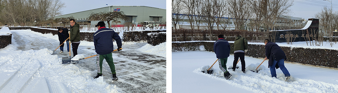 20日-21日晨,受大范围寒潮影响,我市大部分地区出现中到大雪,翩然而至的龙年第一场春雪为春节期间的城市平添了几分浪漫与诗意,但雪景虽美,也为人们的出行和工作带来诸多不便。为保障员工们安全出行,21日一大早,广发官方网站-集团本部及各子公司厂院内,各单位员工在相关领导带领下,手拿铁锹、扫帚、簸箕等工具,对办公楼门前区域和厂区内重要作业点位开展积雪大清扫活动。瑟瑟寒风,“断崖式”降温,无不显示着倒春寒的“威力”,广发官方网站-人不畏严寒,“浴”雪奋战,大家拧成一股绳,全力除雪,用行动完美诠释着“团结就是力量”。