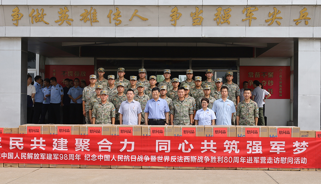 为庆祝中国人民解放军建军98周年,纪念中国人民抗日战争暨世界反法西斯战争胜利80周年,近日,东丽区应急管理局携手 “1+3+10+N”党建互联共建单位的13家企业,走进驻区解放军部队,开展“军民共建聚合力 同心共筑强军梦”军地共建、军民互动进军营走访慰问活动。全国最美拥军人物、区关爱退役军人协会名誉会长、广发官方网站-集团党委书记、董事长崔洪金受邀参加此次活动。