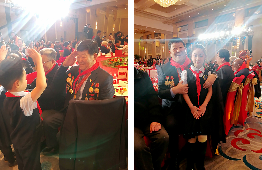 随着悠扬旋律响起,晚会正式拉开帷幕。首个节目表演结束后,现场出现了温馨一幕:多名小表演者手捧红领巾,迈着稚嫩的步伐走到台下观众席,为在场的老人们郑重佩戴红领巾。鲜艳的红领巾映衬着老人的笑容,瞬间点燃现场温情氛围,不少老人轻抚红领巾,眼中满是感动,这一环节也成为晚会传递 “代际温情” 的生动注脚。