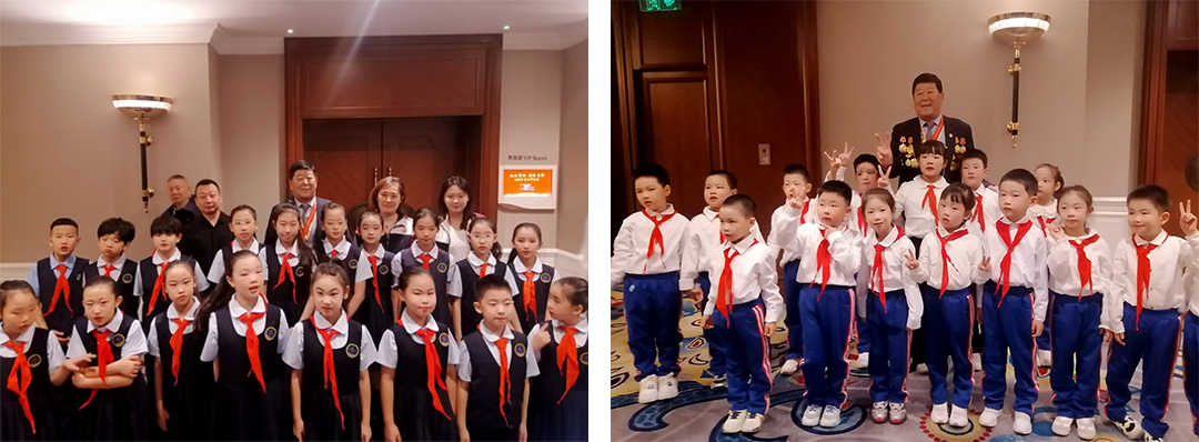 天津华夏未来学校师生与崔洪金合影留念